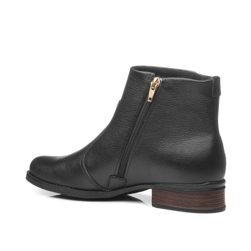 Além de tudo isso, as costuras utilizadas na sua produção são programadas (automáticas), que dispensa o uso de cola entre as partes do couro e do cabedal, preservando a maciez original do couro. Tudo isso para deixar o calçado muito macio e confortável para o uso. O modelo ainda possui zíper na parte interior que facilita o calce. É perfeita para montar diversas combinações de looks nas diferentes estações do ano com muito estilo e sem abrir mão do conforto.
