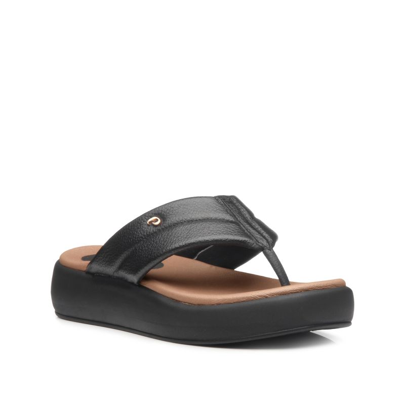 Chinelo Pegada Feminino em Couro Preto 233701-04