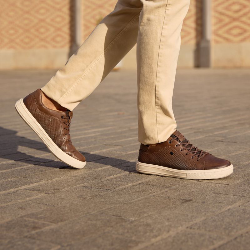 Tênis Casual Pegada Masculino em Couro Tabaco 111501-03